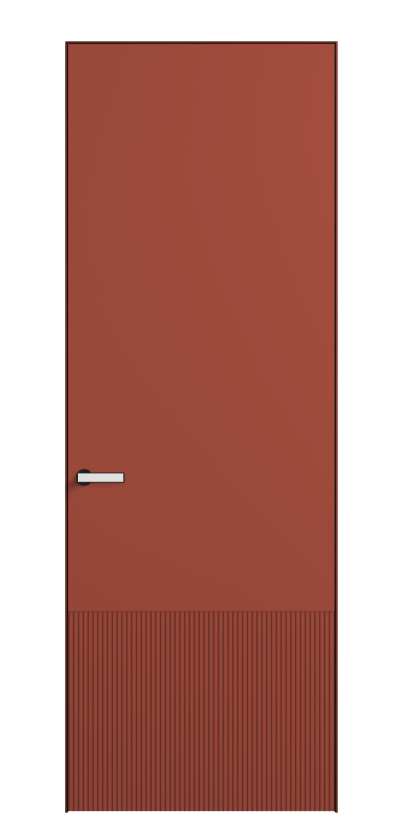 Это полотна с рельефной фрезеровкой. Этот прием делает интерьер объемным, тактильным, вносит интересную текстуру и создает современный образ. Волнистый рельеф может быть выполнен по ламелям из массива дуба в древесных матовых отделках, либо исполнен по натуральному и экологически безопасному материалу — ХДФ, покрытому гладкой эмалью актуальных оттенков.