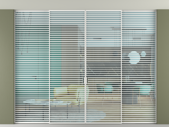 Во всех алюминиевых перегородках, независимо от типа установки, используется компланарный раздвижной механизм, благодаря которому декоративная крышка и полотно находятся в одной плоскости.