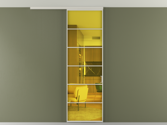 Во всех алюминиевых перегородках, независимо от типа установки, используется компланарный раздвижной механизм, благодаря которому декоративная крышка и полотно находятся в одной плоскости.