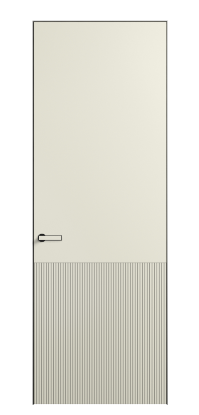 Это полотна с рельефной фрезеровкой. Этот прием делает интерьер объемным, тактильным, вносит интересную текстуру и создает современный образ. Волнистый рельеф может быть выполнен по ламелям из массива дуба в древесных матовых отделках, либо исполнен по натуральному и экологически безопасному материалу — ХДФ, покрытому гладкой эмалью актуальных оттенков.